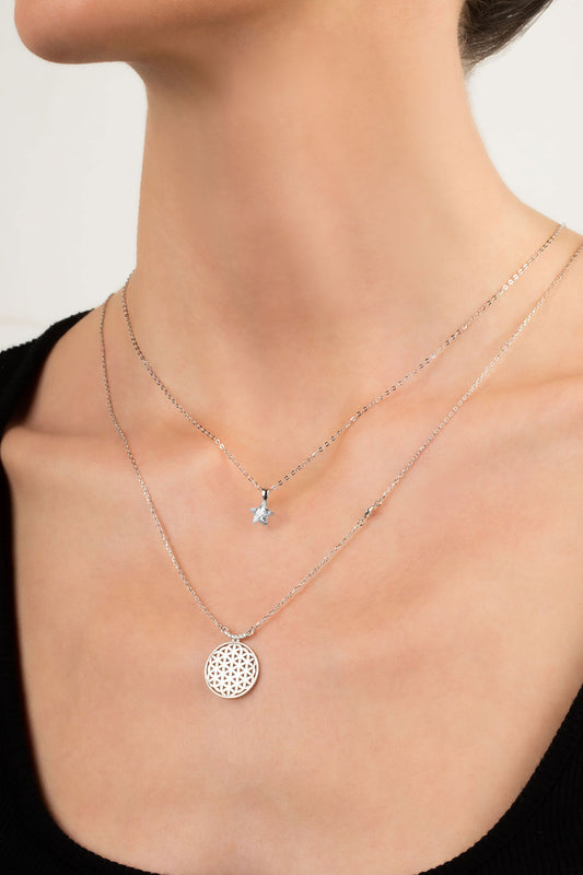Yaşam Çiçeği Figürlü 18 Ayar Beyaz Altın Kaplama Taşlı Gümüş Kolye 1070040199