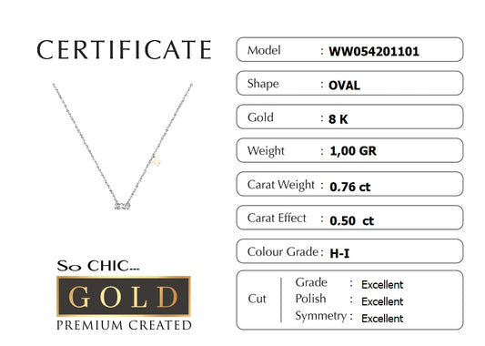 Beyaz Altın Oval Kesim Sertifikalı Premium Created Tektaş Kolye Ww05420110199