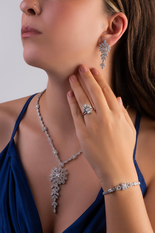 Elmas Şıklığı 18 Ayar Beyaz Altın Kaplama Ayarlanabilir Gümüş Yüzük 5141219954