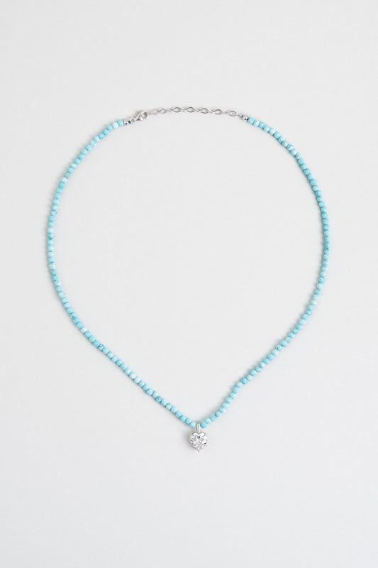 Turkuaz Kalp 18 Ayar Beyaz Altın Kaplama 45 Cm Gümüş Kolye 07309001699