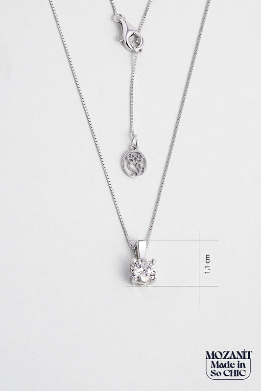 Elegant Mozanit 18 Ayar Beyaz Altın Kaplama 45 Cm Gümüş Tektaş Kolye 5205520199