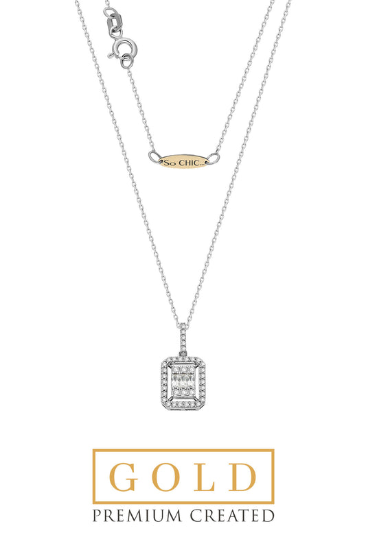 Beyaz Altın Sertifikalı Premium Created Baget Taşlı 0.29 Ct Effect Kolye Ww03300220142