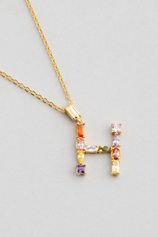 Mini H Harfi Günışığı Renkli 18 Ayar Sarı Altın Kaplama Gümüş Kolye 07300081344