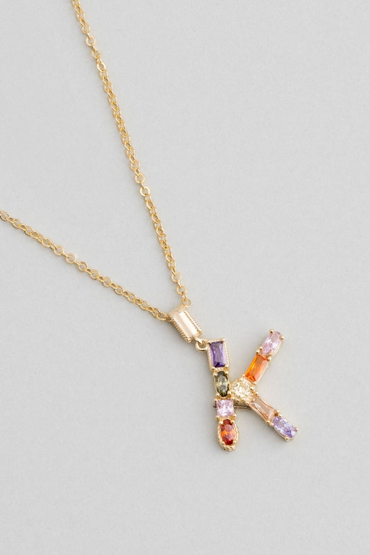 Mini K Harfi Günışığı Renkli 18 Ayar Sarı Altın Kaplama Gümüş Kolye 07300121344