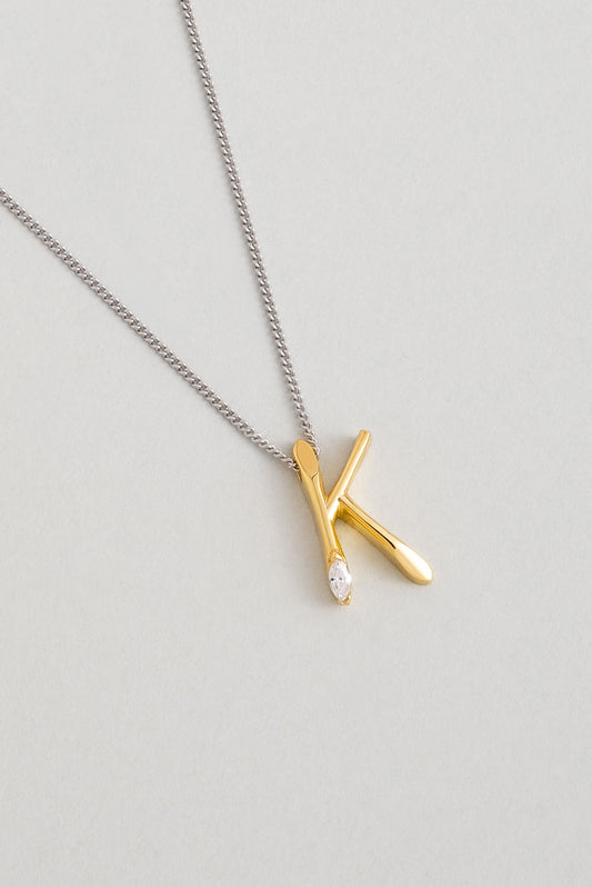 Asimetrik K Harfi 18 Ayar Beyaz Ve Sarı Altın Kaplama 45 Cm Gümüş Harfli Kolye 07302120144