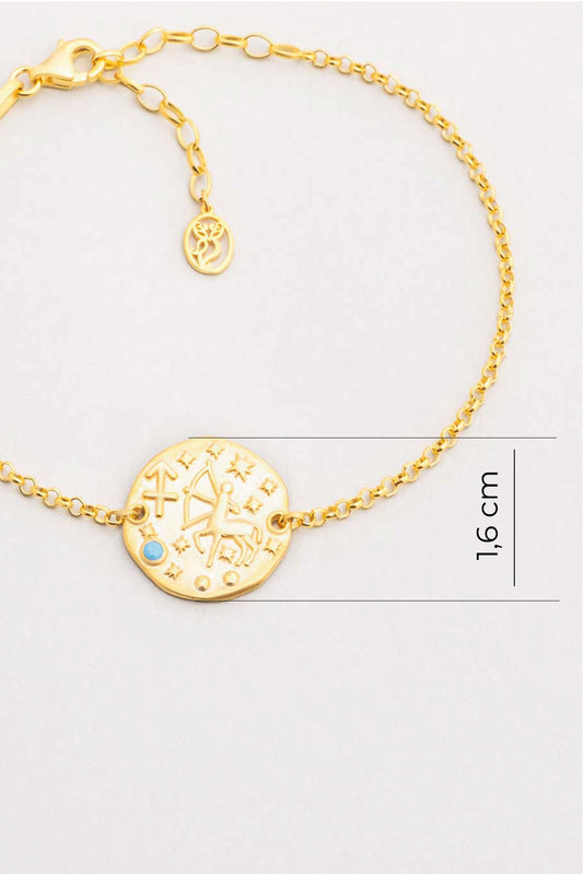 Yay Burcu 18 Ayar Sarı Altın Kaplama 20 Cm Gümüş Bileklik 07310281644