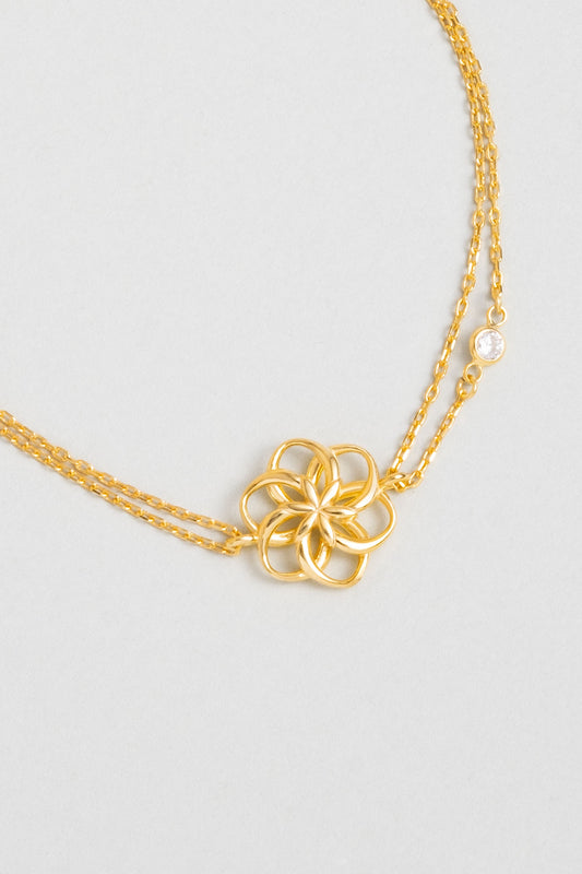 Yaşam Çiçeği 18 Ayar Sarı Altın Kaplama 20 Cm Gümüş Bileklik 1125630144