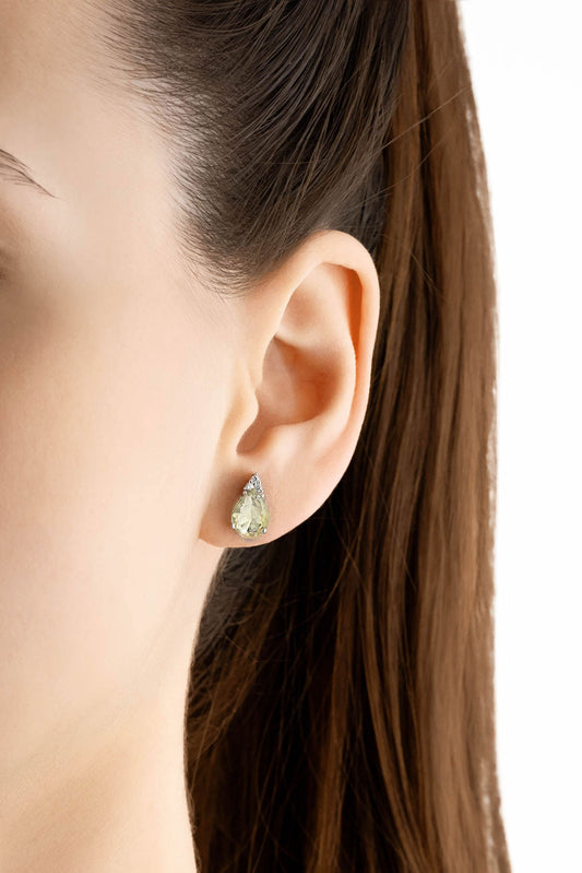 Mozanit Dokunuşu 18 Ayar Beyaz Altın Kaplama Gümüş Tektaş Küpe 5205540199