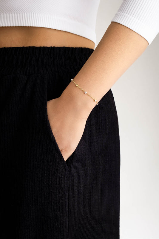 Pearl 18 Ayar Sarı Altın Kaplama 21 Cm Gümüş Minimal Bileklik 5146916244