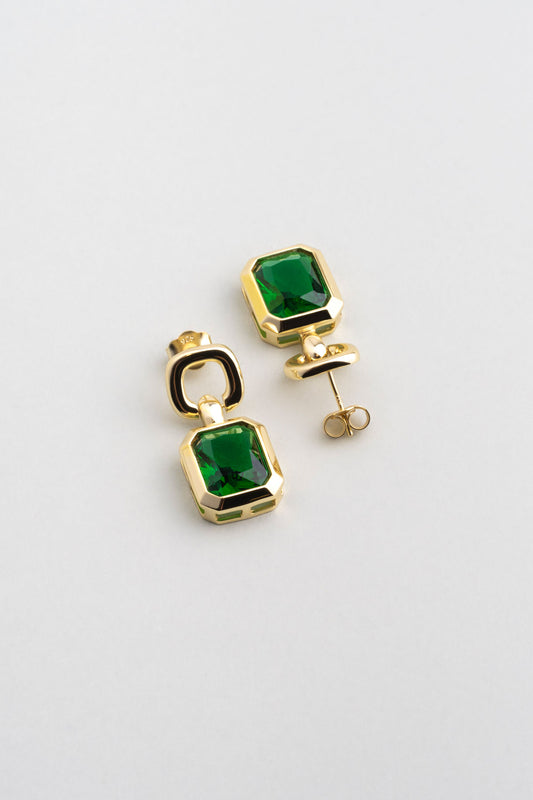 Zümrüt Yeşili 18 Ayar Sarı Altın Kaplama Gümüş Küpe 5156700444