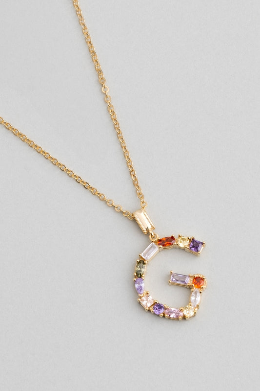 Mini G Harfi Günışığı Renkli 18 Ayar Sarı Altın Kaplama Gümüş Kolye 07300071344