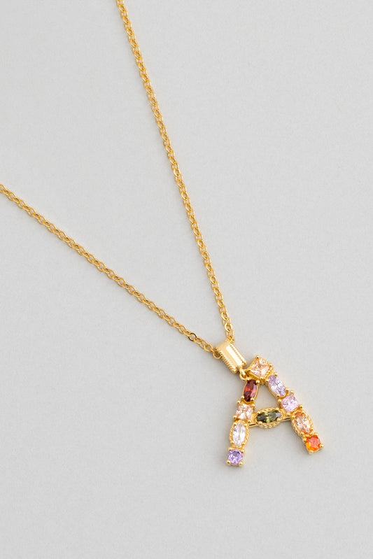 Mini A Harfi Günışığı Renkli 18 Ayar Sarı Altın Kaplama 45 Cm Gümüş Kolye 07300001344