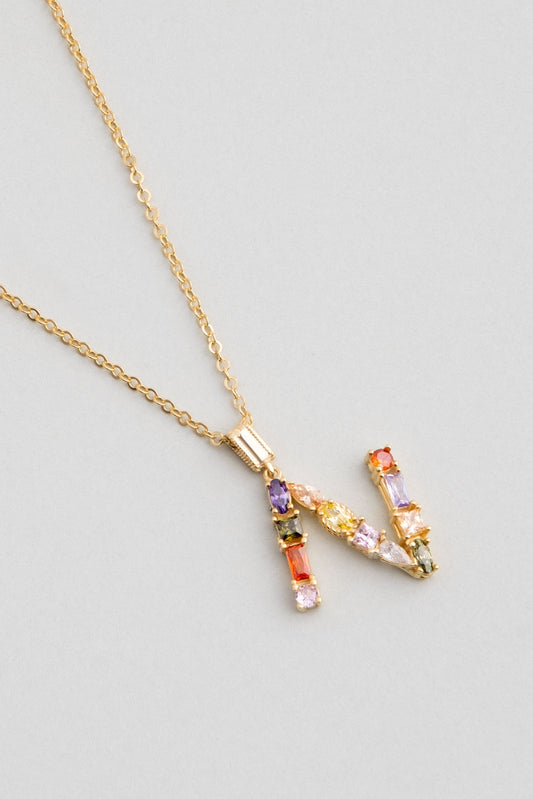 Mini N Harfi Günışığı Renkli 18 Ayar Sarı Altın Kaplama Gümüş Kolye 07300151344