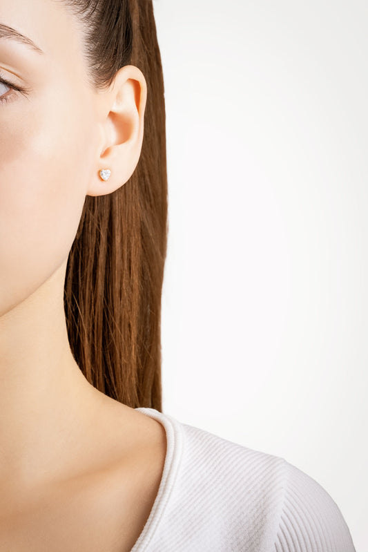 Kalp Figürlü 18 Ayar Sarı Altın Kaplama Gümüş Tektaş Küpe 5016190144
