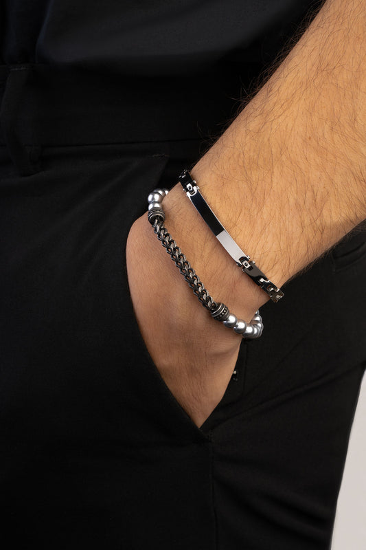 Hematit Taşlı Erkek Çelik Bileklik 02438271299