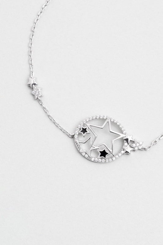 Aşk Yıldızı 18 Ayar Beyaz Altın Kaplama 19 Cm Gümüş Bileklik 07304590199