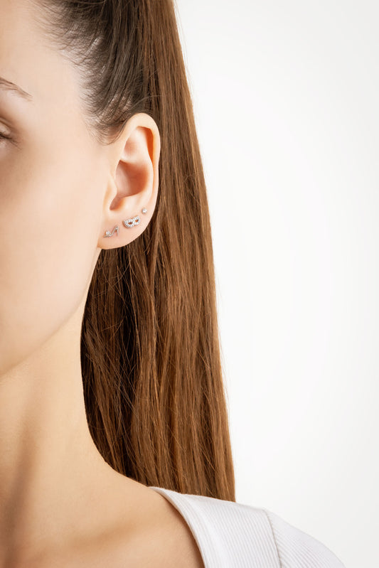 Moda Ikonu 18 Ayar Beyaz Altın Kaplama Gümüş Çoklu Küpe 5154980199