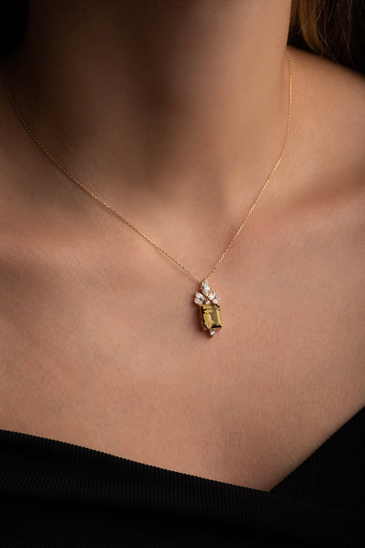 Created Light Yellow Canary Taşlı Clarit Serisi 14 Ayar Sarı Altın Kolye Gg02950425442