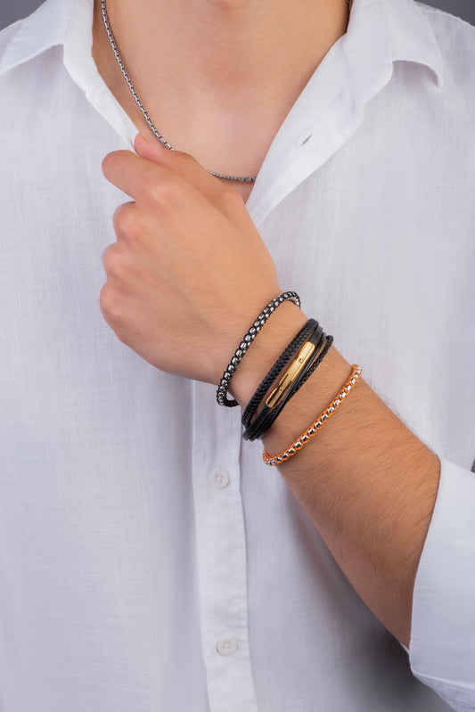 Gri Ipli Erkek Çelik Ayarlanabilir Bileklik 02436999099
