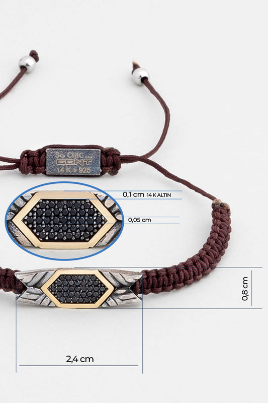 Kahverengi Ipli 14 Ayar Altın Erkek Gümüş Ipli Bileklik 07295101199