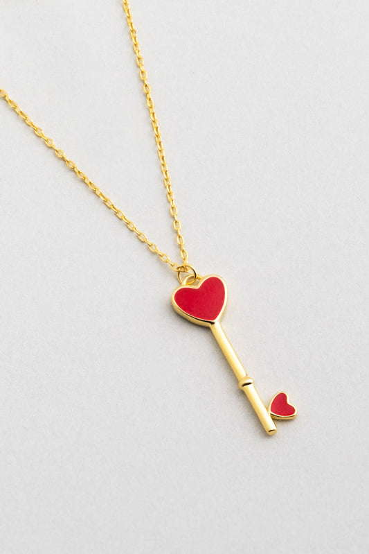 Aşk Anahtarı 18 Ayar Sarı Altın Kaplama 45 Cm Gümüş Kolye 5169560844