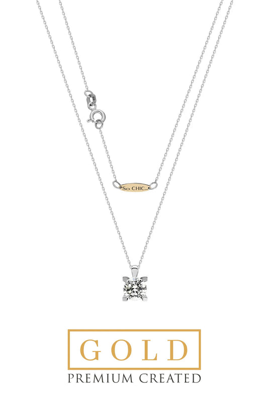 Beyaz Altın Sertifikalı Premium Created Taşlı Tektaş 0.90 Ct Effect Kolye Ww02680170142