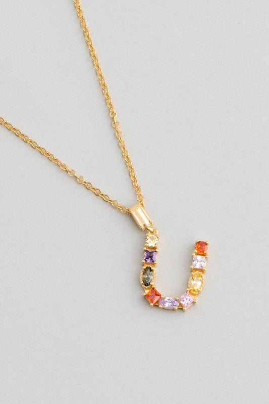 Mini U Harfi Günışığı Renkli 18 Ayar Sarı Altın Kaplama Gümüş Kolye 07300231344