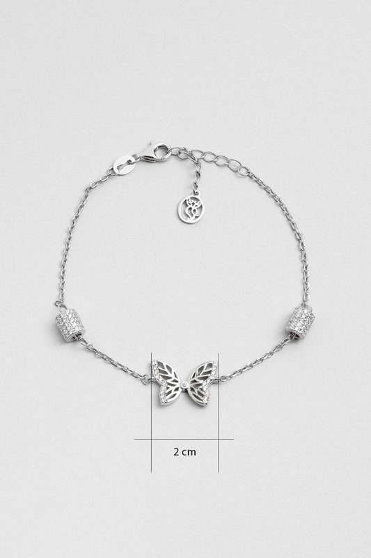 Kelebek Etkisi 18 Ayar Beyaz Altın Kaplama 18 Cm Gümüş Bileklik 5167150199