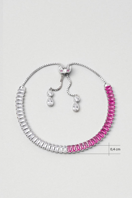 Renkli Baget 18 Ayar Beyaz Altın Kaplama Ayarlanabilir Gümüş Bileklik 5172173999