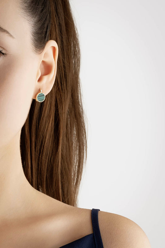 Minimal Malahit 18 Ayar Sarı Altın Kaplama Gümüş Küpe 07299530444