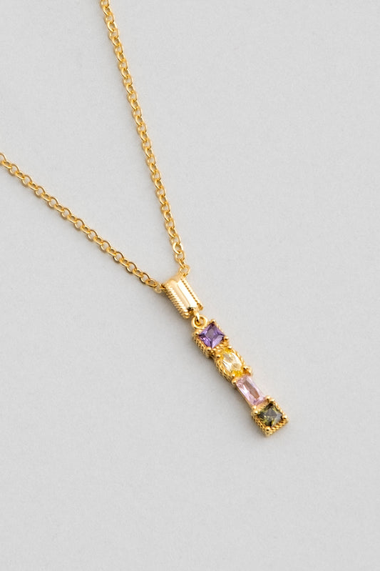 Mini I Harfi Günışığı Renkli 18 Ayar Sarı Altın Kaplama Gümüş Kolye 07300091344