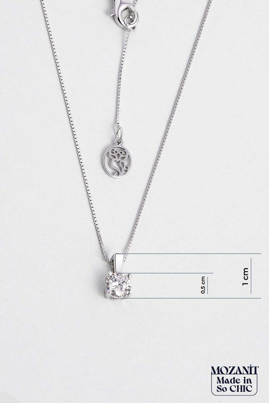 Mozanit Dokunuşu 18 Ayar Beyaz Altın Kaplama 45 Cm Gümüş Tektaş Kolye 5205510199
