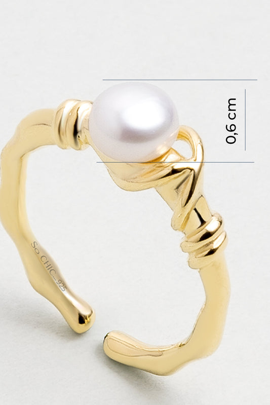 Doğal Inci Taşlı 18 Ayar Sarı Altın Kaplama Ayarlanabilir Gümüş Yüzük 5146874454