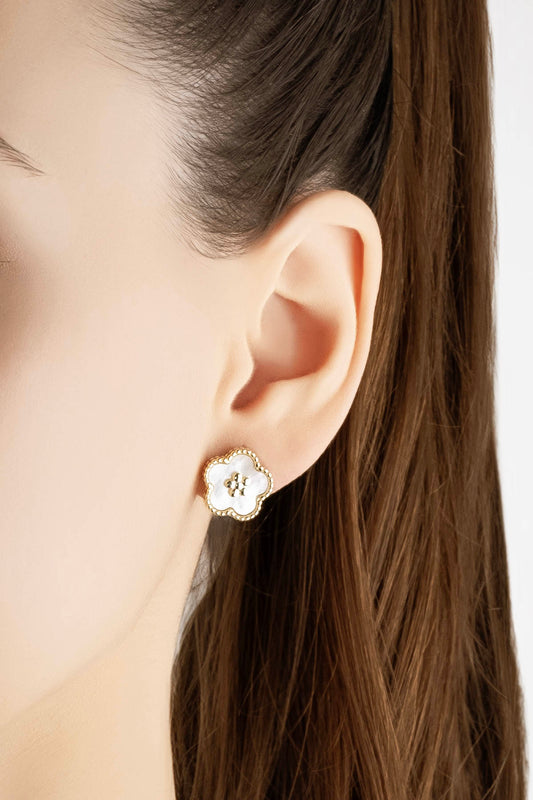 Sedef Çiçeği 18 Ayar Beyaz Altın Kaplama Gümüş Küpe 07299404644