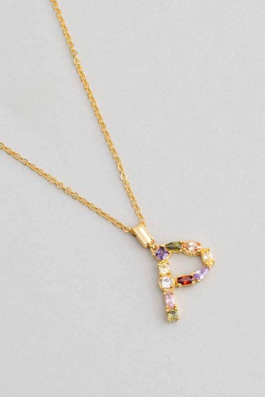 Mini P Harfi Günışığı Renkli 18 Ayar Sarı Altın Kaplama Gümüş Kolye 07300181344