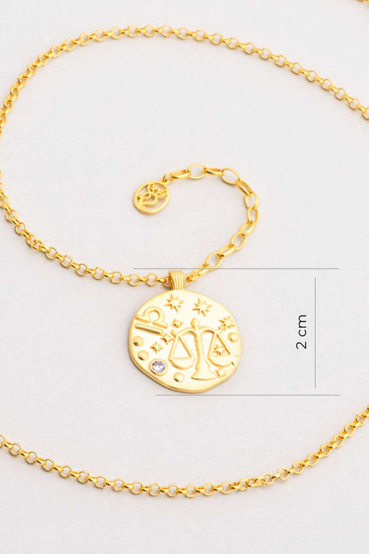 Terazi Burcu 18 Ayar Sarı Altın Kaplama 45 Cm Gümüş Kolye 07310469344