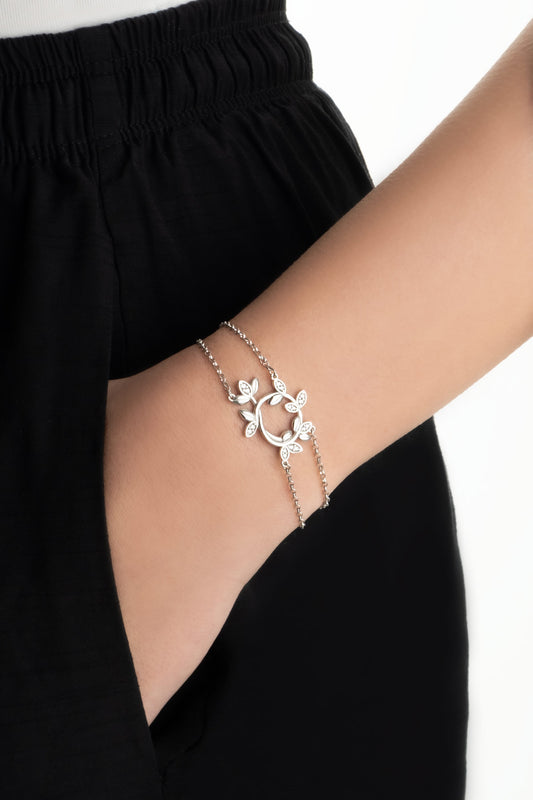 Sevgi Sarmaşığı 18 Ayar Beyaz Altın Kaplama 19 Cm Gümüş Bileklik 07313030199