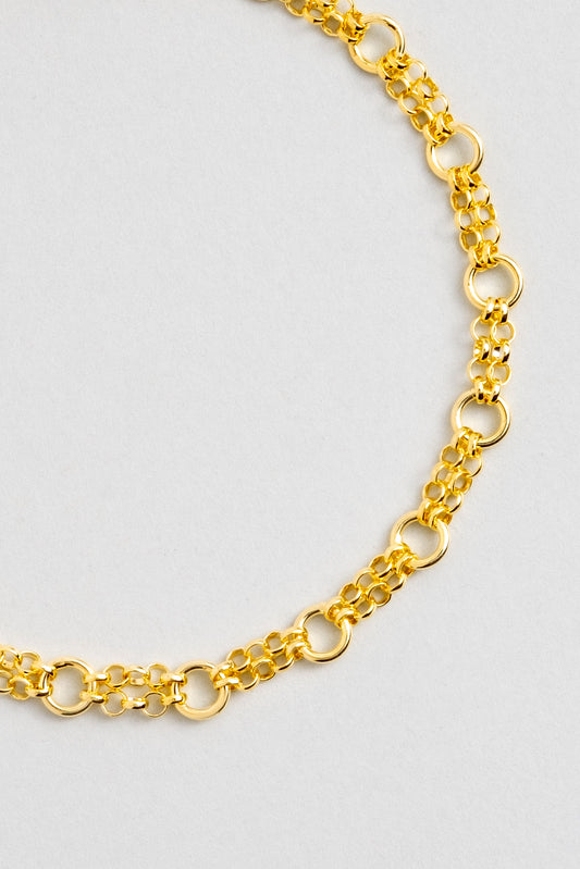 Klasik Stil Halka Detay 18 Ayar Sarı Altın Kaplama 20 Cm Gümüş Zincir Bileklik 1165794499