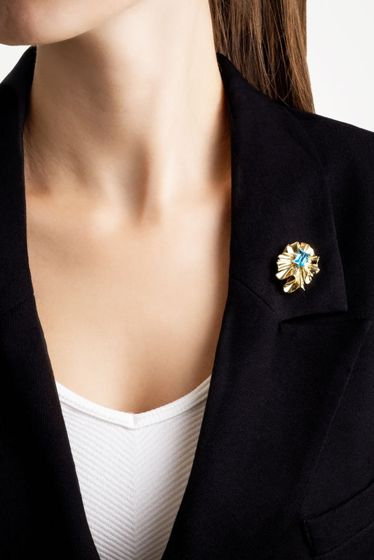 Vintage 18 Ayar Sarı Altın Kaplama Gümüş Tasarım Broş 5171590544