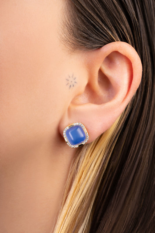 Büyülü Safir 18 Ayar Sarı Altın Kaplama Gümüş Küpe 07297150544