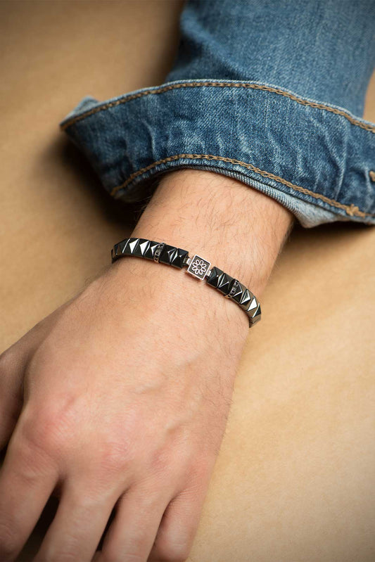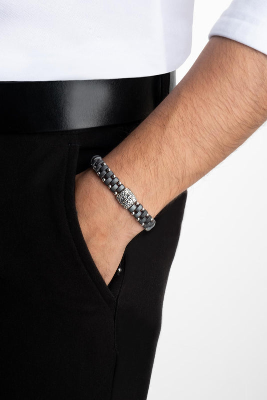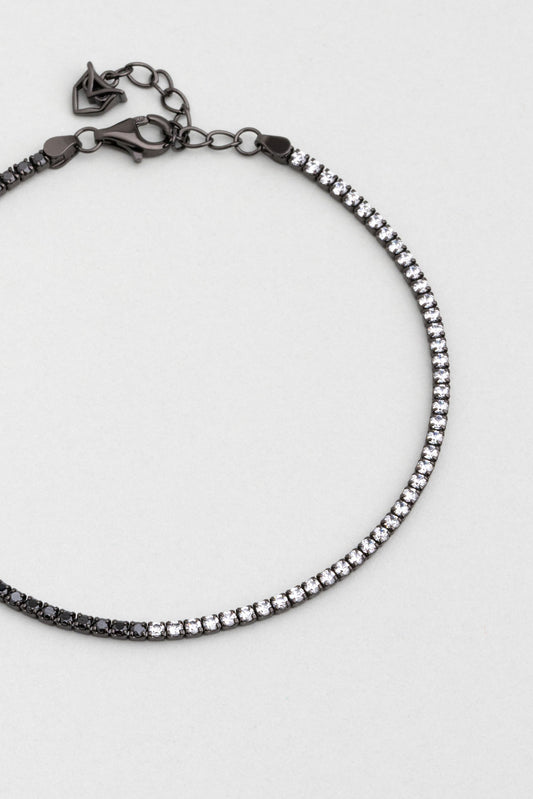 Siyah Ve Beyaz Taşlı Rodyum Kaplama 21 Cm Unisex Gümüş Su Yolu Bileklik 5160881342