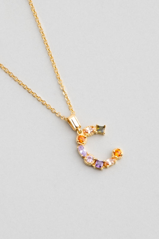 Mini C Harfi Günışığı Renkli 18 Ayar Sarı Altın Kaplama 45 Cm Gümüş Kolye 07300021344