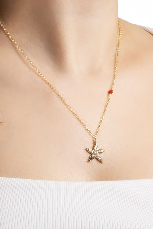 Mercan Yıldızı 18 Ayar Sarı Altın Kaplama 44 Cm Gümüş Kolye 07311006244