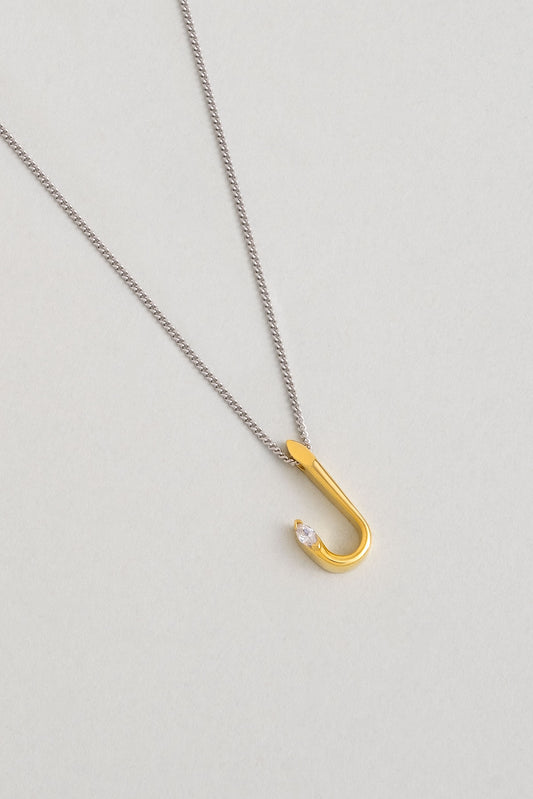 Asimetrik J Harfi 18 Ayar Beyaz Ve Sarı Altın Kaplama 45 Cm Gümüş Harfli Kolye 07302110144