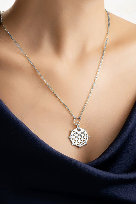 Yaşam Çiçeği 18 Ayar Beyaz Altın Kaplama 55 Cm Gümüş Kolye 1161550199