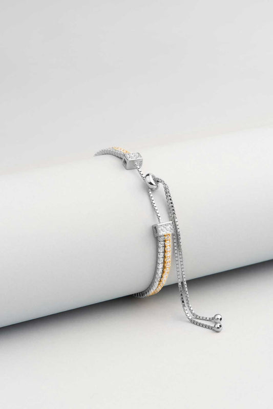 Çift Sıra Su Yolu 18 Ayar Mix Altın Kaplama Gümüş Ayarlanabilir Bileklik 5030150114