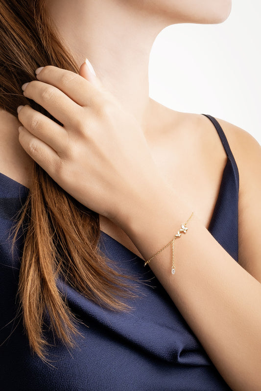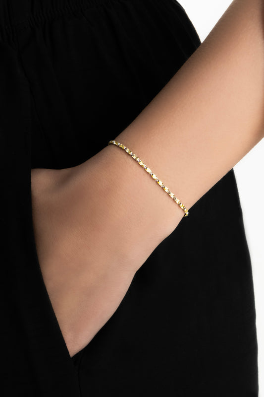 Taşlı Çiçek 18 Ayar Sarı Altın Kaplama 20 Cm Gümüş Minimal Bileklik 5139070144