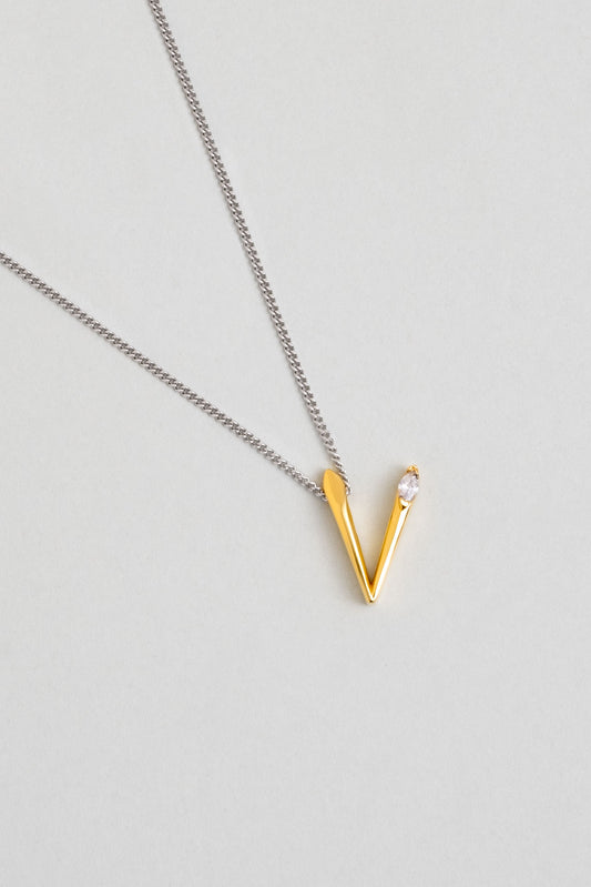 Asimetrik V Harfi 18 Ayar Beyaz Ve Sarı Altın Kaplama 45 Cm Gümüş Harfli Kolye 07302250144