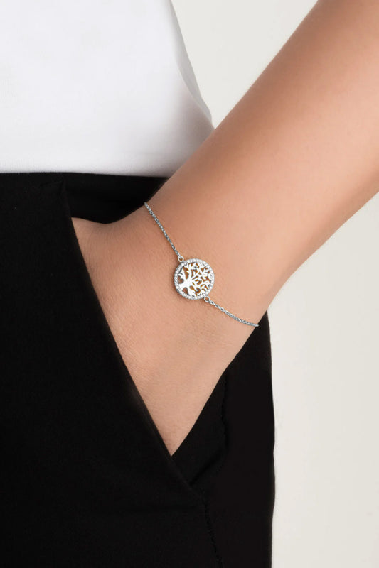 Hayat Ağacı 18 Ayar Beyaz Altın Kaplama 20 Cm Gümüş Minimal Bileklik 1051640199
