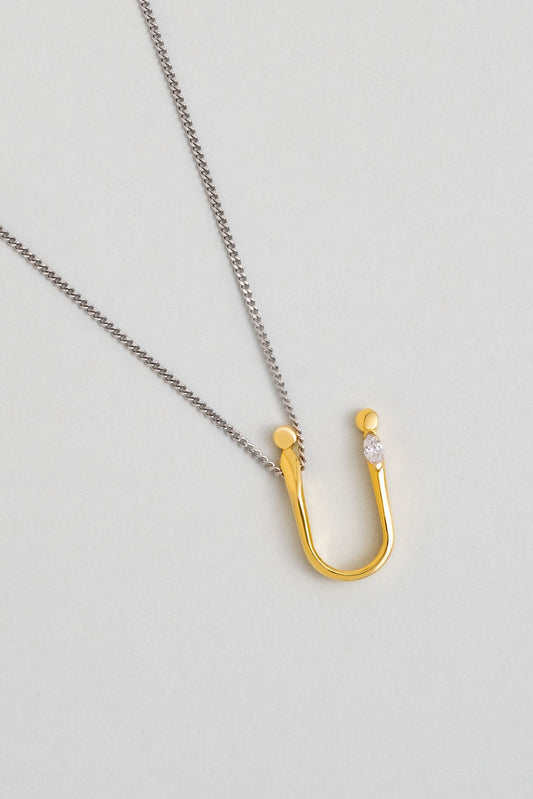 Asimetrik Ü Harfi 18 Ayar Beyaz Ve Sarı Altın Kaplama 45 Cm Gümüş Harfli Kolye 07302240144